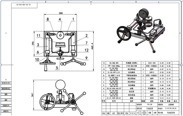 手動試壓泵主要由工作臺,高、低壓手動泵,手動泄壓系統(tǒng)和油箱,管路系統(tǒng)等構(gòu)成。